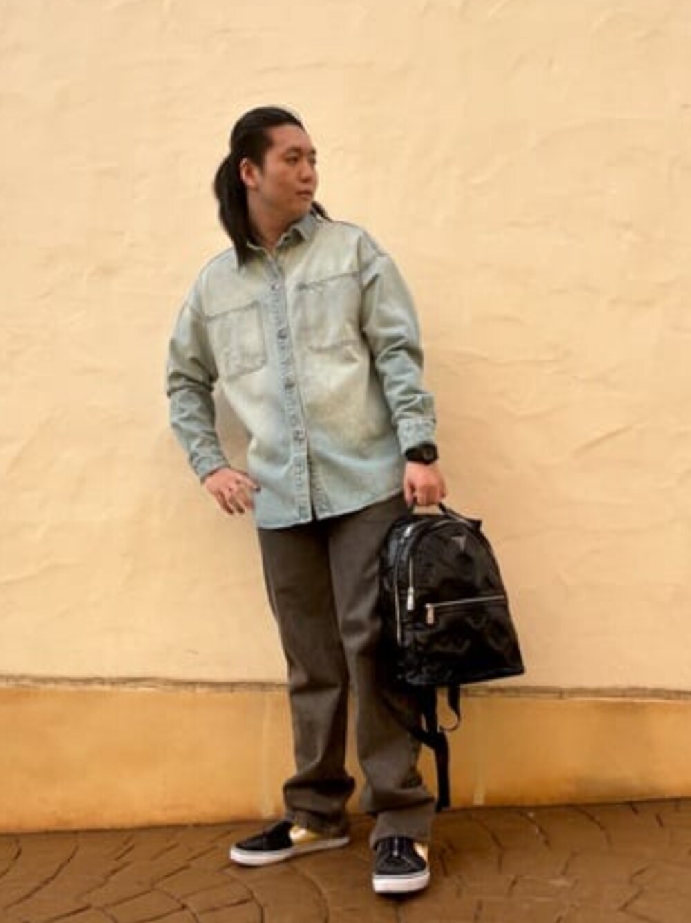 デニム春コーデ‼️🌸 あえて上下違う色合いにしてみました! デニムジャケットの背中には刺繍があり 1枚着るだけでとても存在感があるアイテムです‼️ バックパックも大き目でお出かけにピッタリです