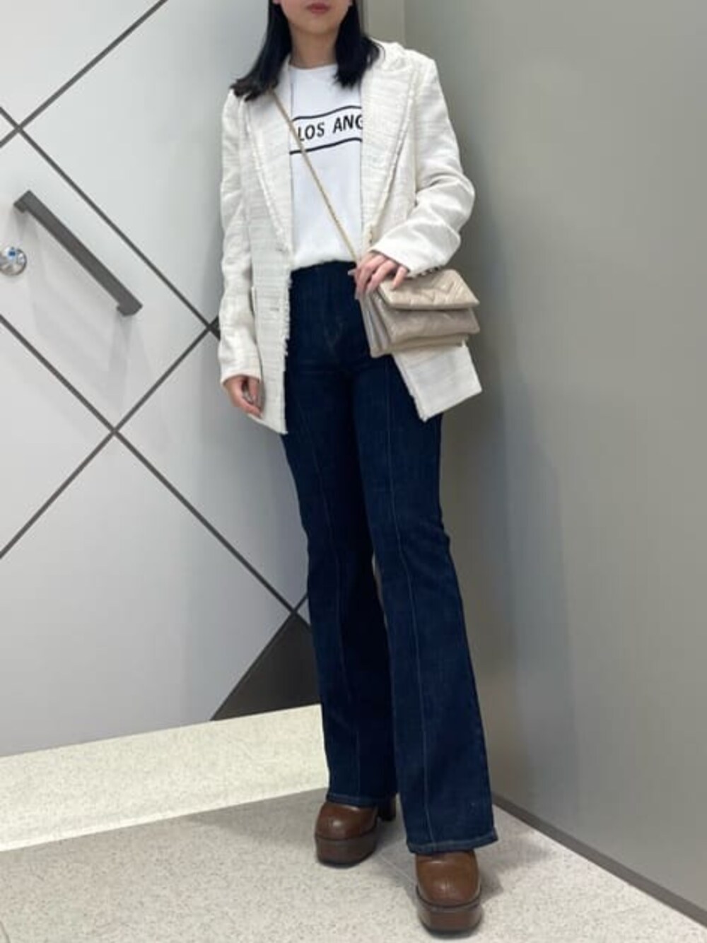 ロゴとボリュームのあるスリーブがコーディネートのポイントになるニットは半袖なのでシーズンレスに使っていただけます。 センターラインの入ったデニムは美シルエットにしてくれるだけでなくカジュアルすぎないカラーで大人の方にも使いやすいデザインです。 ツイード素材のジャケットら細身のデザインとお尻が隠れる長さでスタイルよく見せてくれます。ドレッシーなイメージのあるジャケットをデニムなどのカジュアルアイテムとコーディネートするのもおすすめです!