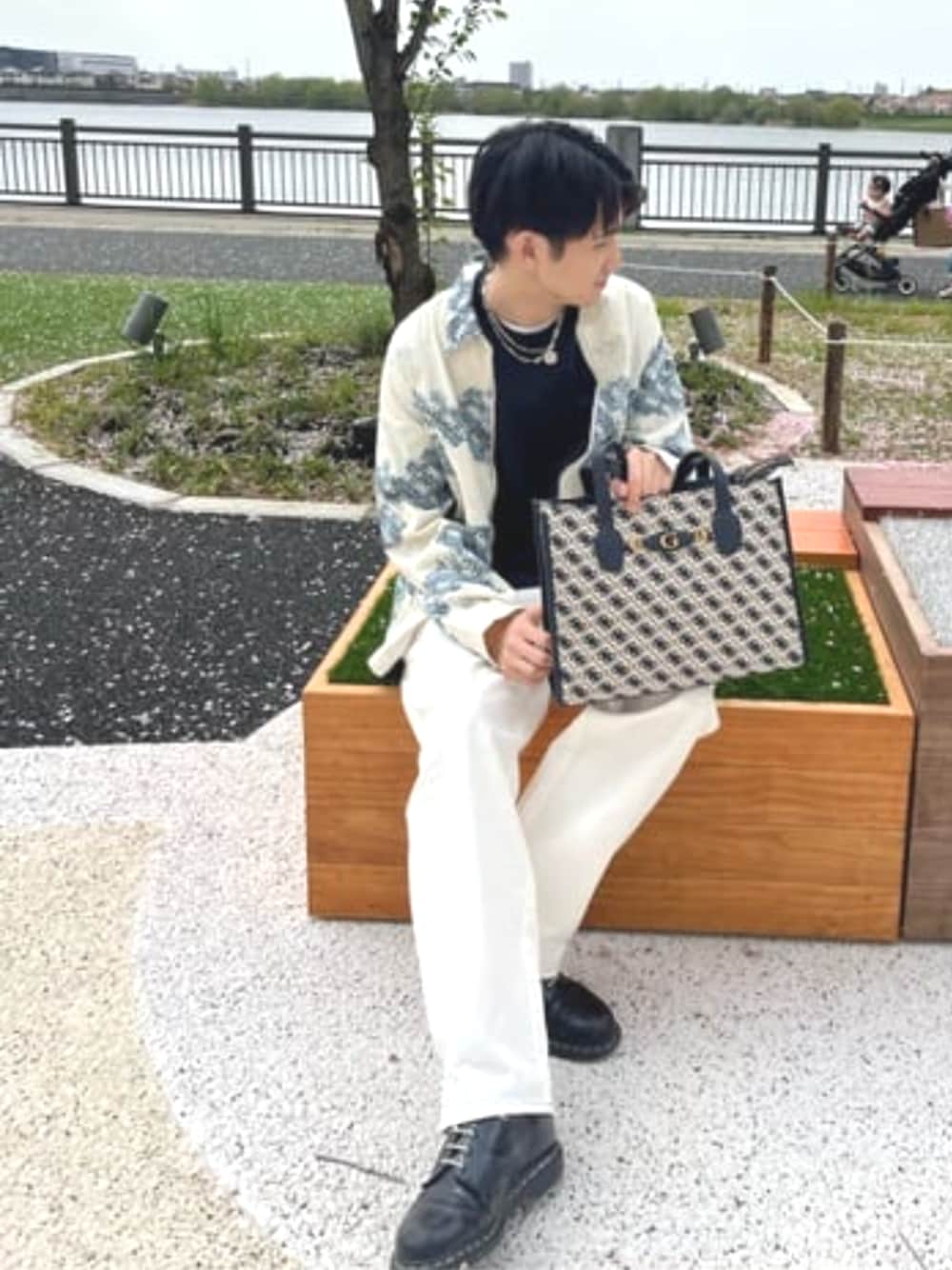 今回は、白とネイビーを基調にコーディネートを組みました!また、ジャケットとデニムのサイズ感を少し大きめにして、全体のシルエットも意識してみました!中にきているTシャツは ビッグシルエットで背面にバンダナのプリントが施されています。色味もこれからの季節に合ったカラーリングなので、ぜひ真似してみてください!