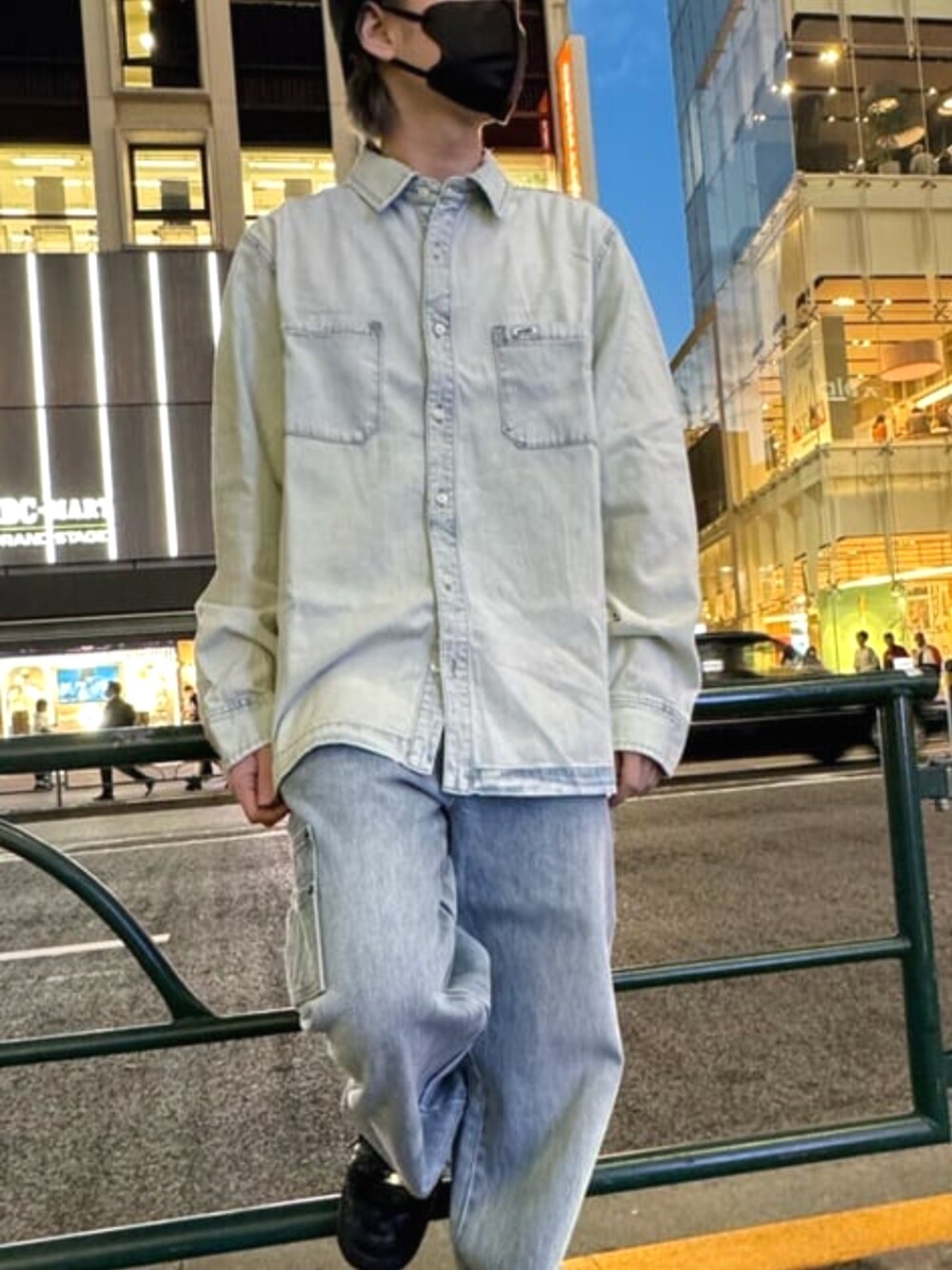 色味が異なるデニムを合わせたコーディネートです。デニムシャツもデニムパンツどちらともこれからの季節に活躍できるアイテムになってます。 ストリート感のあるコーディネートも組みやすいアイテムです。