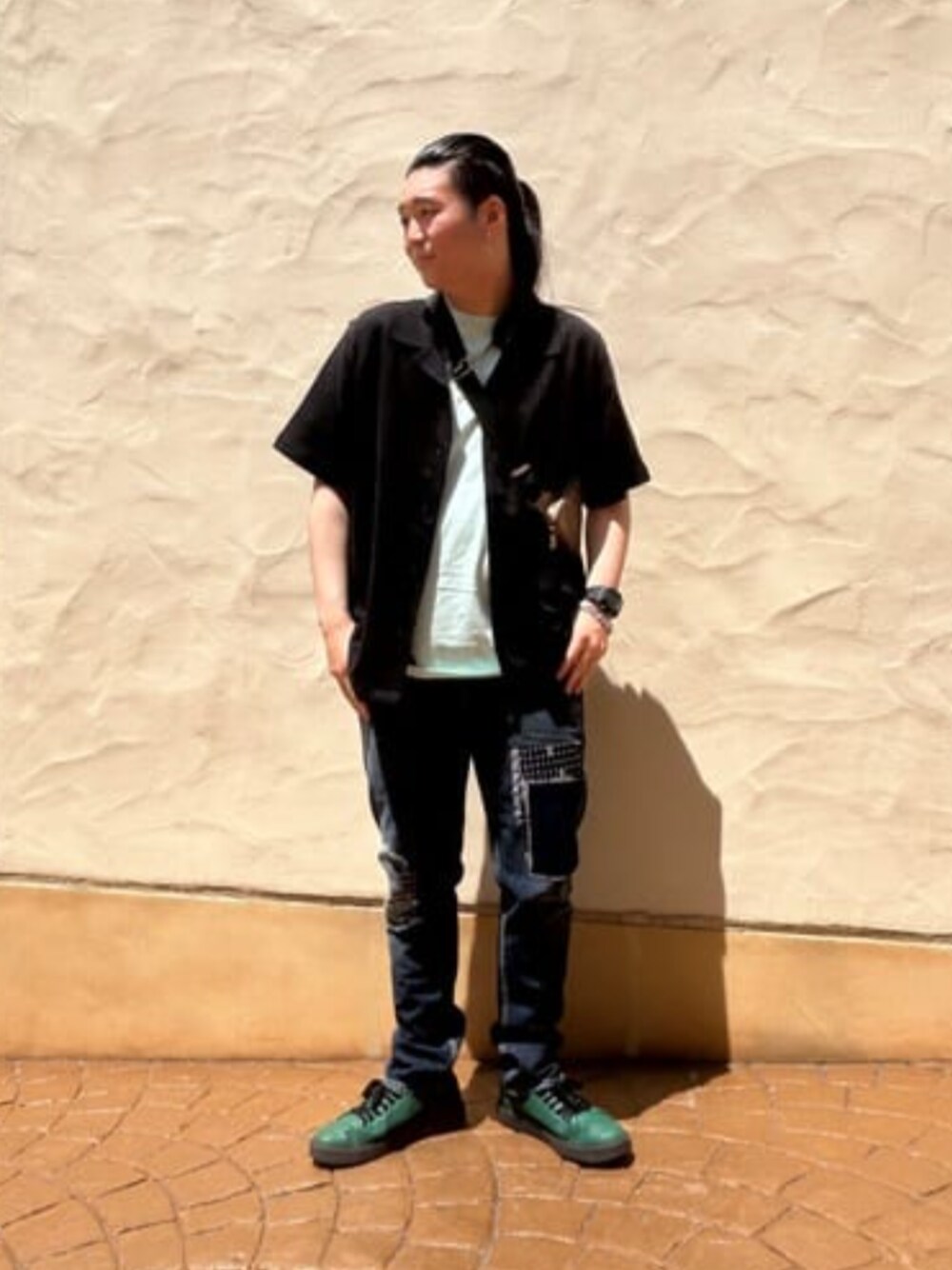 暗めの色合いで統一しました! バックは差し色です! ブレスレットもワンポイントアイテムに なるのでおすすめです!
