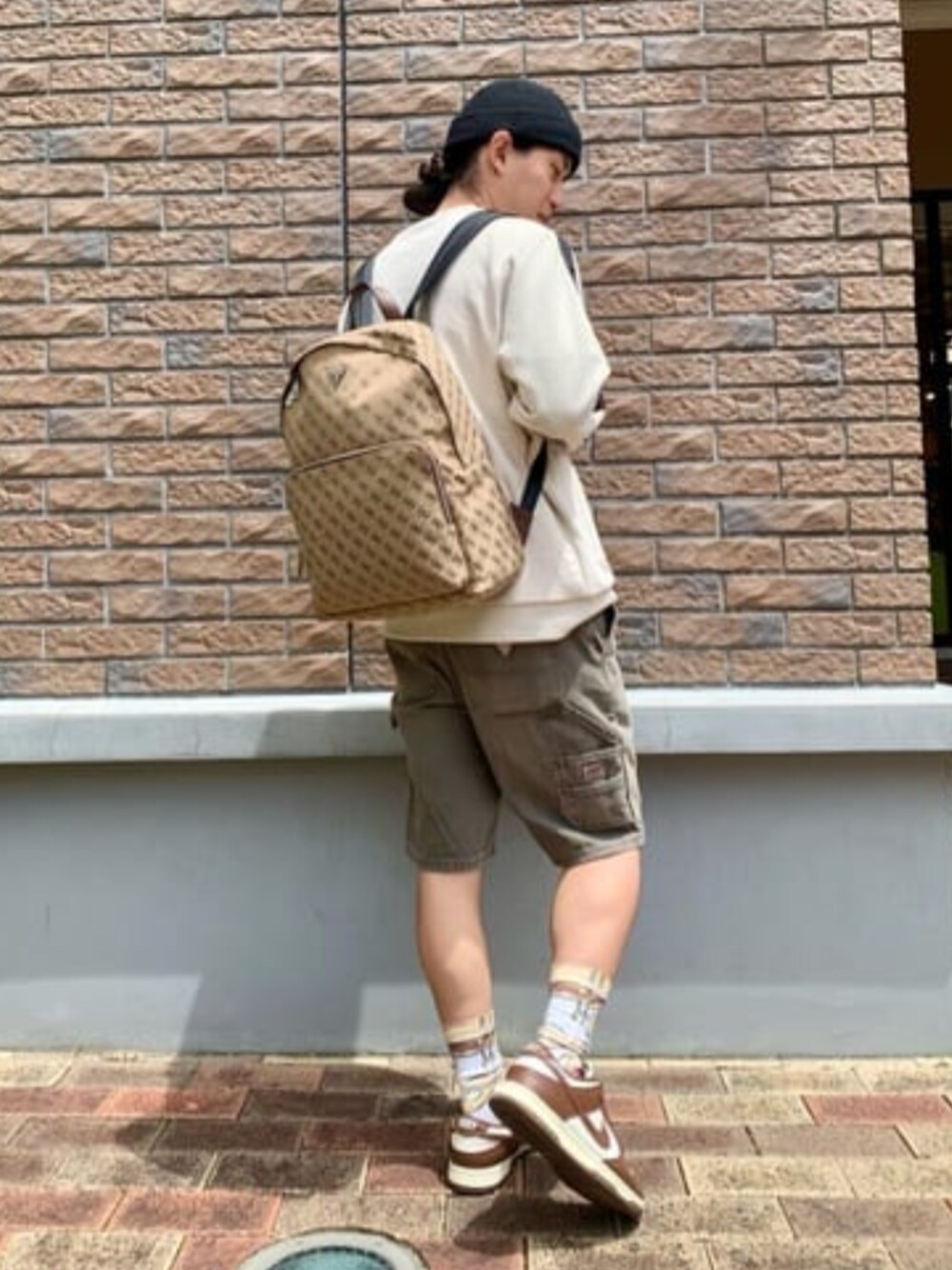 バックパックは容量が大きく荷物がたくさん入ります‼︎小物を収納できるポケットも充実しているので通勤通学にもオススメ⭐︎ ショートパンツはカーペンター仕様のディテールがこなれ感UP⤴︎服装がシンプルになりがちなこれからの季節にいいですね☺︎