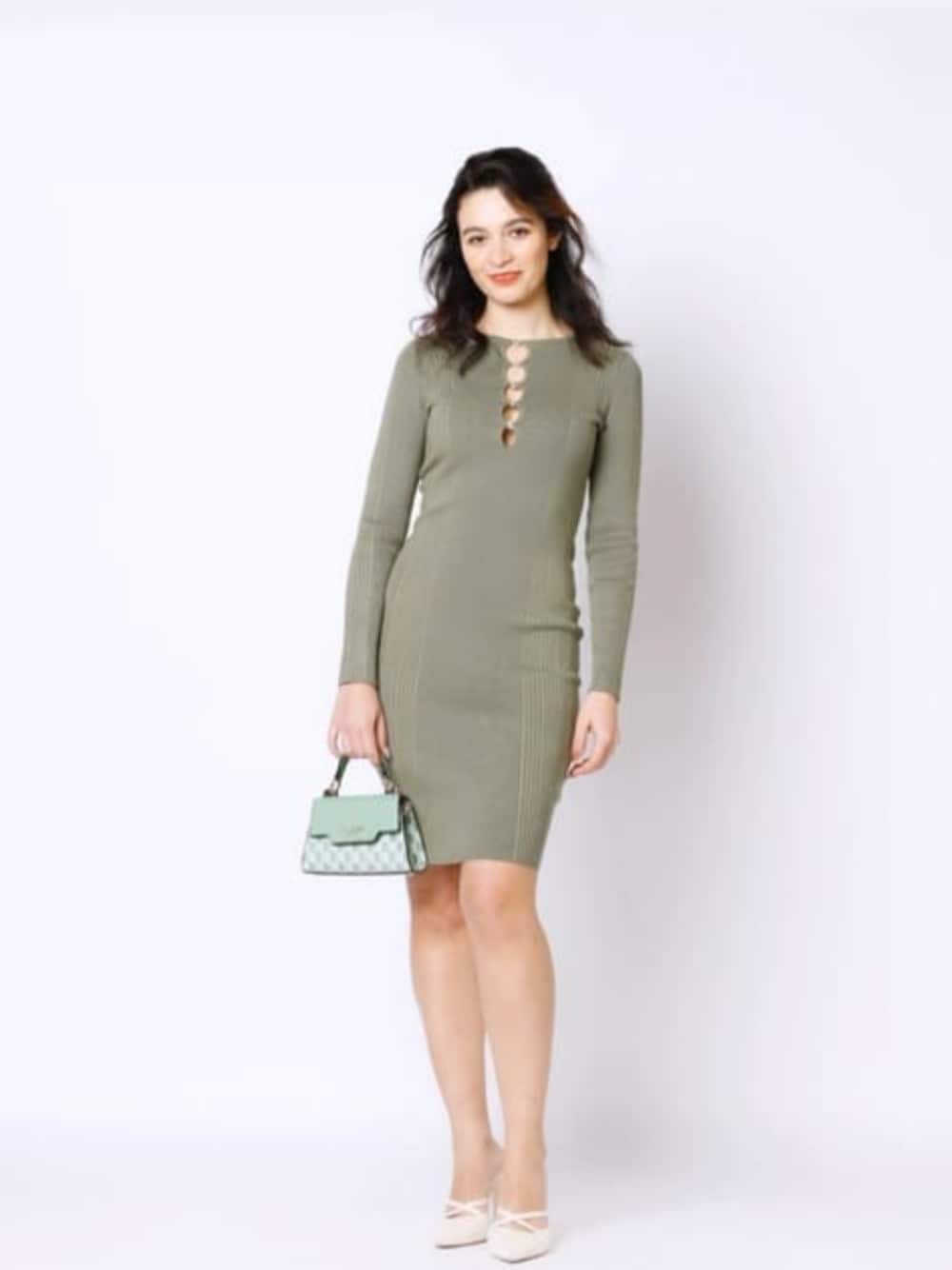 大人カジュアルコーデ♡ ニット造材のドレスなので着心地はとても良く まだ長袖なので一枚でも全然着こなせます💚 ≪着用サイズ≫ ドレス S ハンドバッグは四色展開です