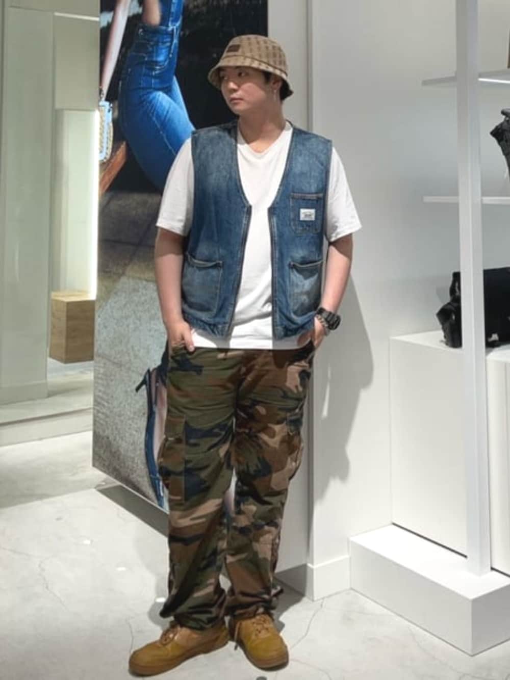 迷彩カーゴパンツを使った ストリートコーデです! ベストとの相性もバッチリ