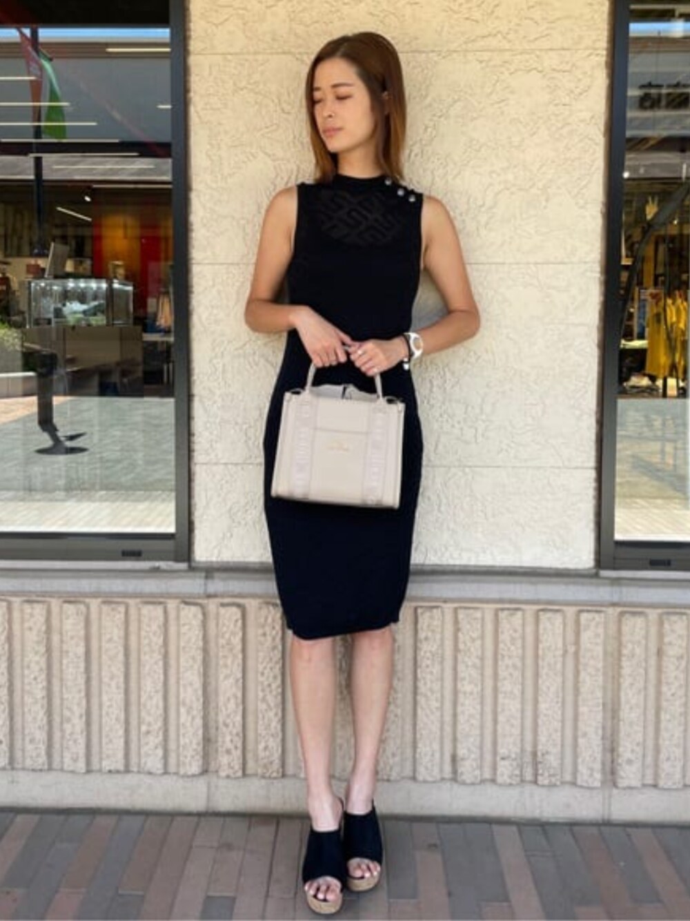 GUESS JAPAN(GUESS JAPAN)のワンピース「Paula Logo Knit Mini Dress ワンピース ドレス」を使ったコーディネート