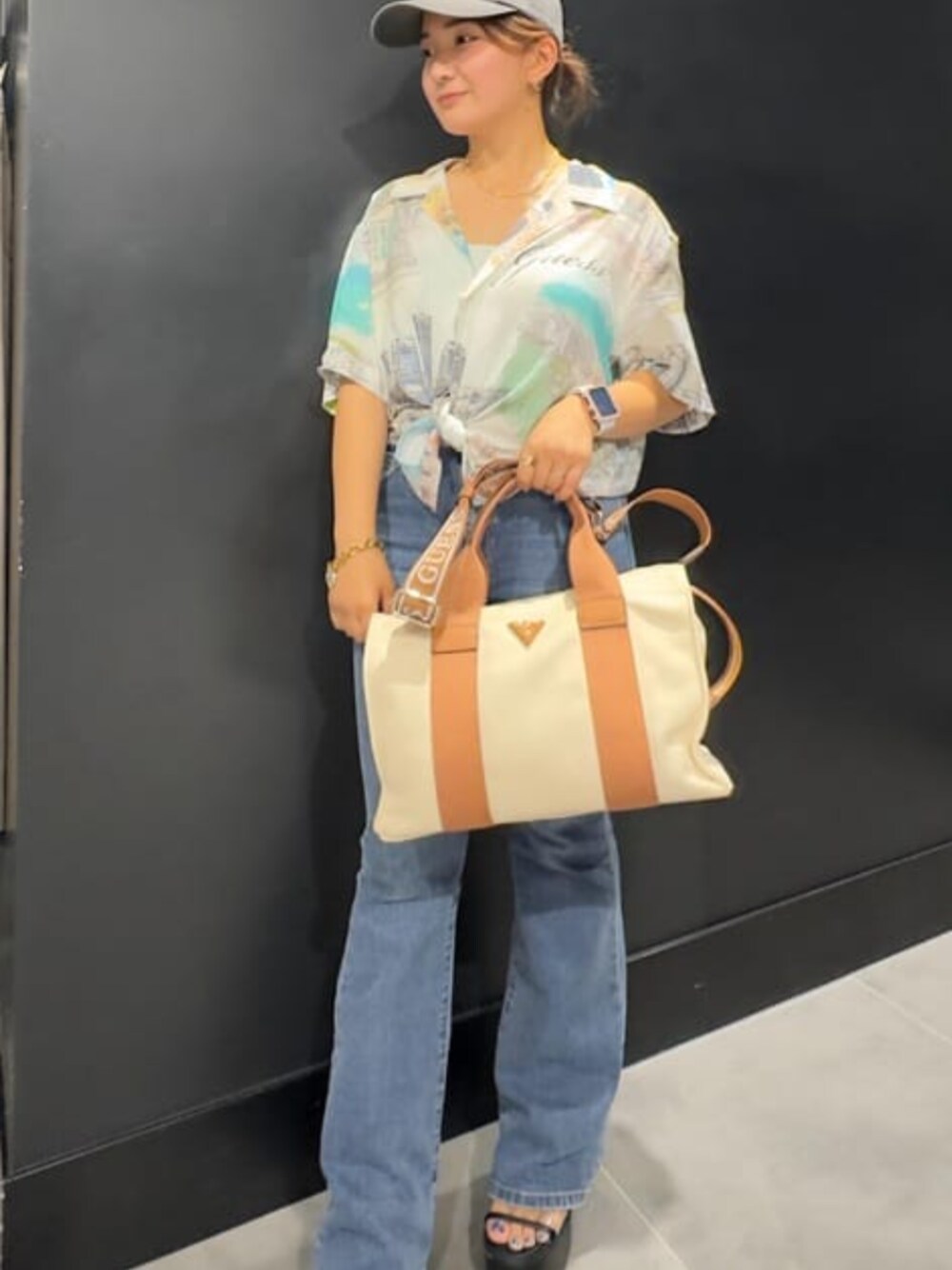 GUESS JAPAN(GUESS JAPAN)のデニムパンツ「M-Tone Flare Brush Cut Denim Pants デニムパンツ ジーンズ レディース」を使ったコーディネート