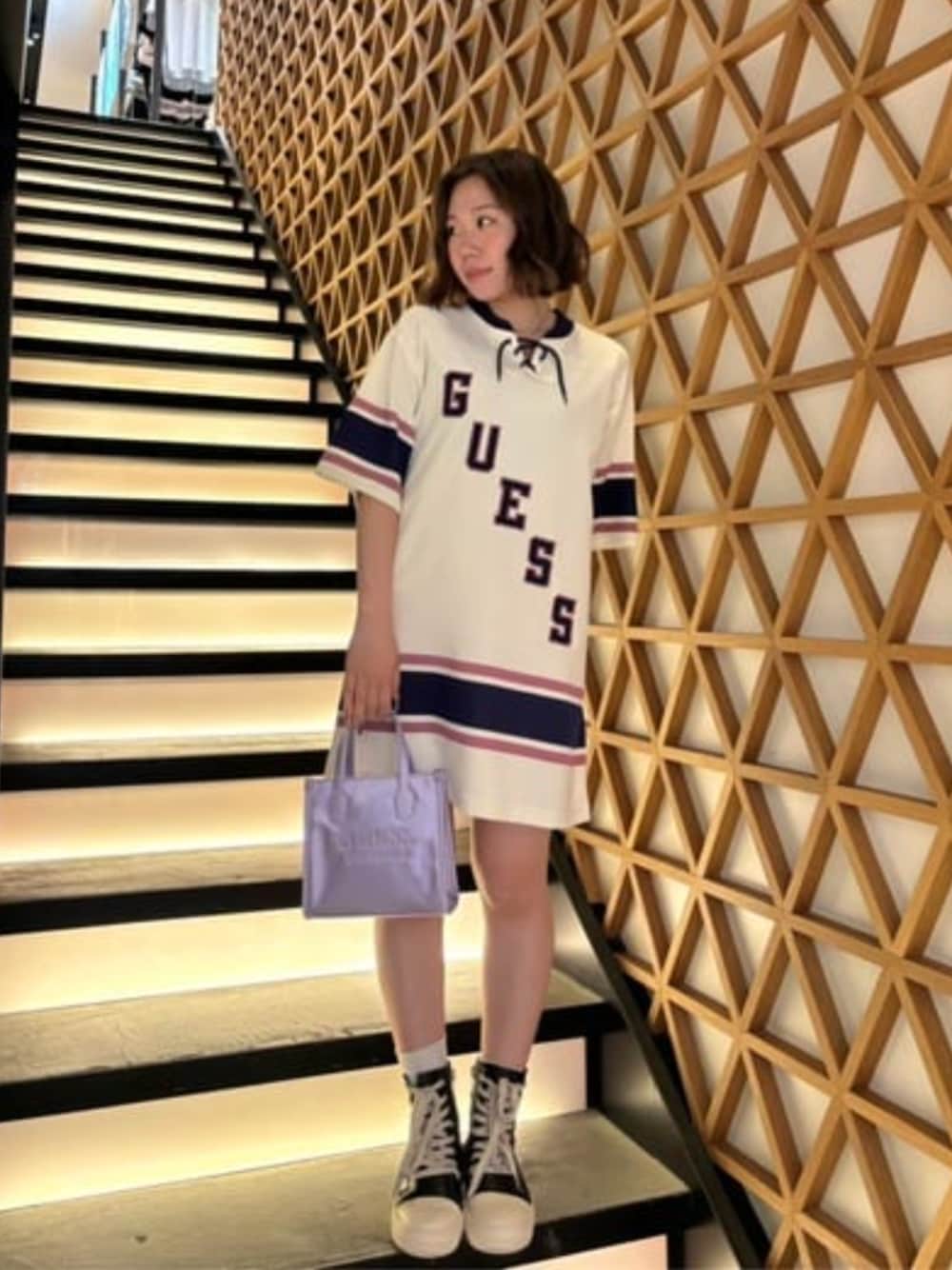 2024年はやりのユニフォームがguess originalsからワンピースになって出ました! 色合いが女の子っぽくて可愛いのと首元の編み上げが抜群に可愛いめっちゃオススメです🩷 パステルカラーのバッグと合わせても!