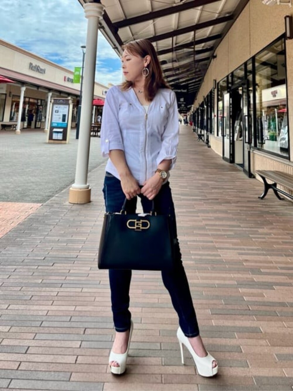 オフィスカジュアルコーデ⭐︎ バックはお仕事にも使いやすい大きさでポケットも豊富なので仕分けしやすく使い勝手がとてもいいです! マチもあって内容量もあり見た目もカッコイBAGです(^^) トップス、デニムはアウトレット限定なので是非お店にお越しください♪