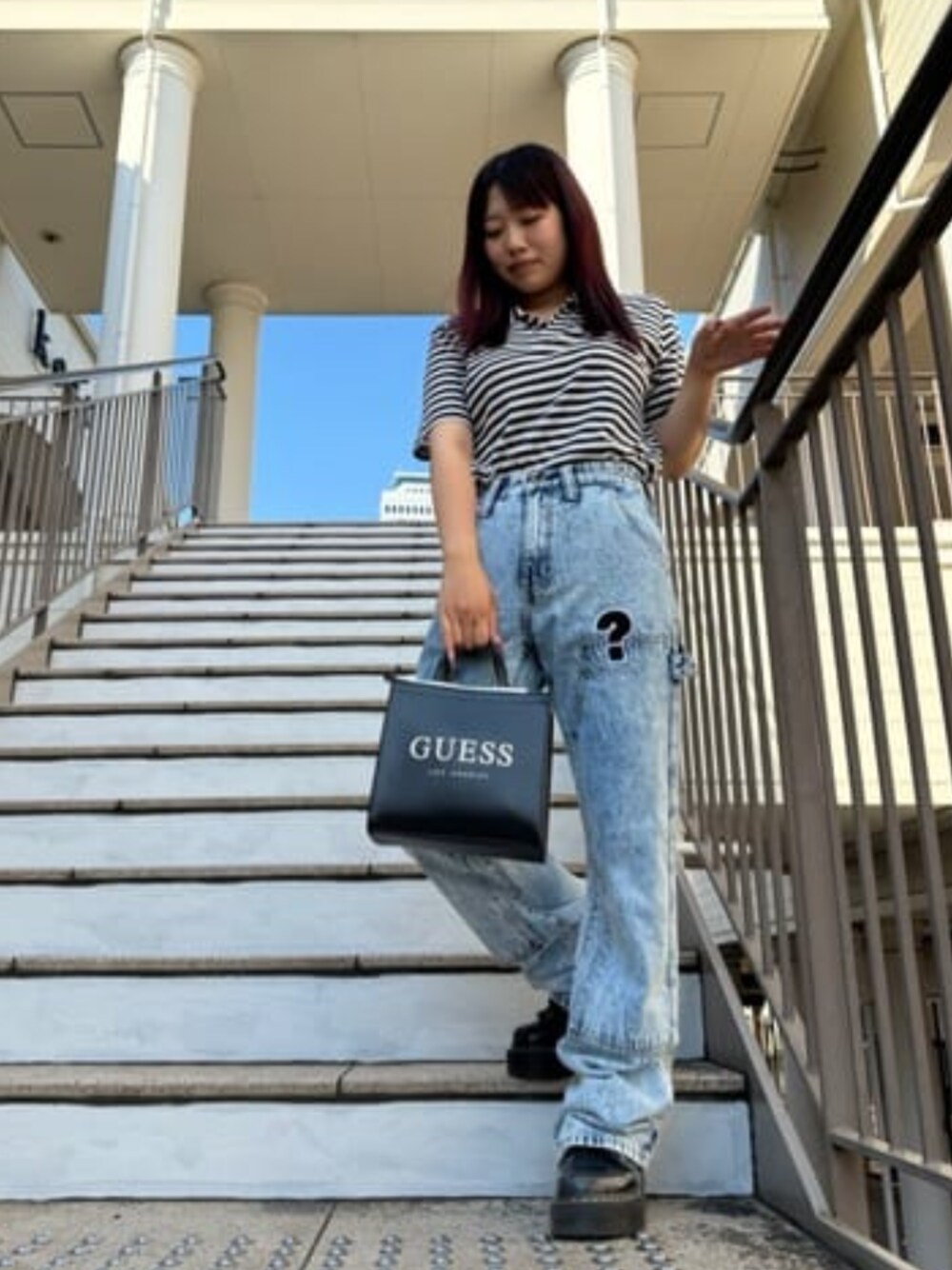 guess×Marketのコラボデニムです!! メンズ商品ですが、女性の方でもオーバーサイズに着用していただけます⭐︎ 背面のワッペン加工がお気に入りです♪ ストライプの襟シャツは擦れても肌荒れしないような優しい素材ですので夏の日も安心です!
