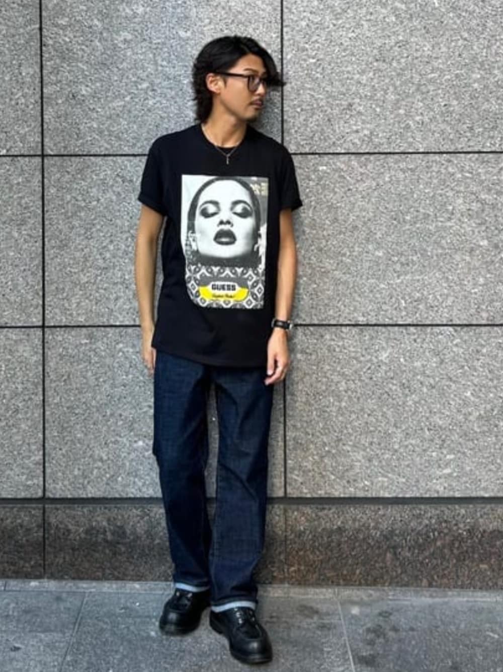 GUESS JAPAN(GUESS JAPAN)のデニムパンツ「Blue Black Tone Wide Denim Pants デニムパンツ ジーンズ」を使ったコーディネート