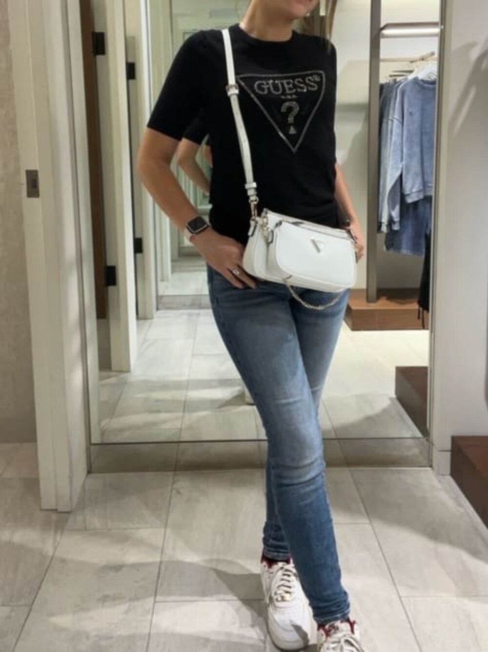GUESS JAPAN(GUESS JAPAN)のショルダーバッグ「NOELLE Double Pouch Crossbody クロスボディバッグ レディース」を使ったコーディネート