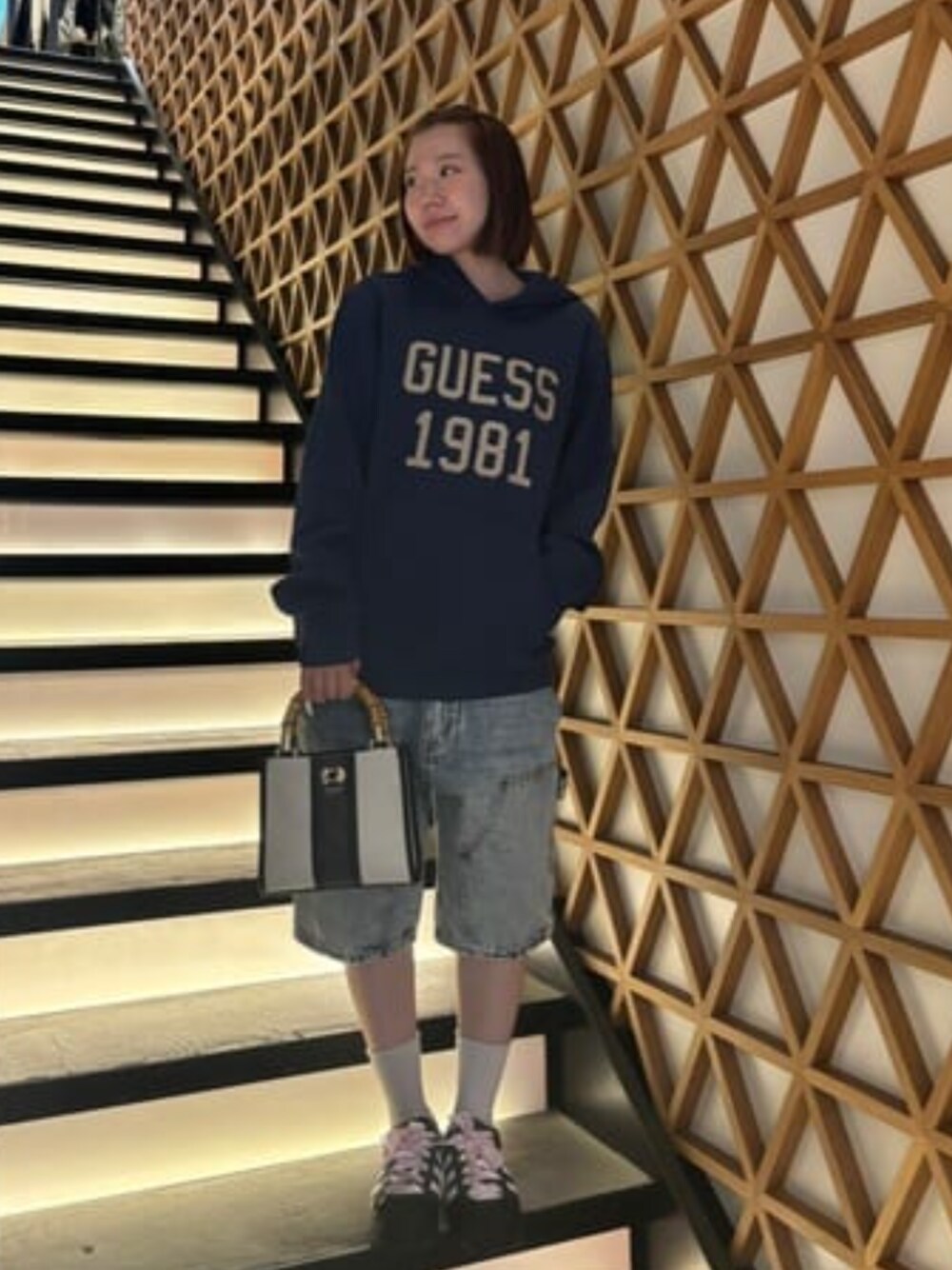GUESS JAPAN(GUESS JAPAN)のデニムパンツ「GUESS Originals Panel Carpenter Short デニムパンツ カーペンター ショート ジーンズ」を使ったコーディネート