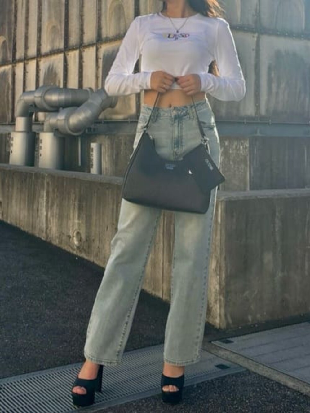 GUESS JAPAN(GUESS JAPAN)のTシャツ/カットソー「GUESS Originals Long-Sleeve Logo Top Tシャツ レディース」を使ったコーディネート
