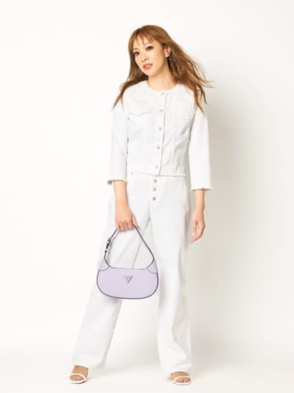 GUESS JAPAN(GUESS JAPAN)のショルダーバッグ「AVIS Convertible Xbody Top Zip ショルダーバッグ レディース」を使ったコーディネート
