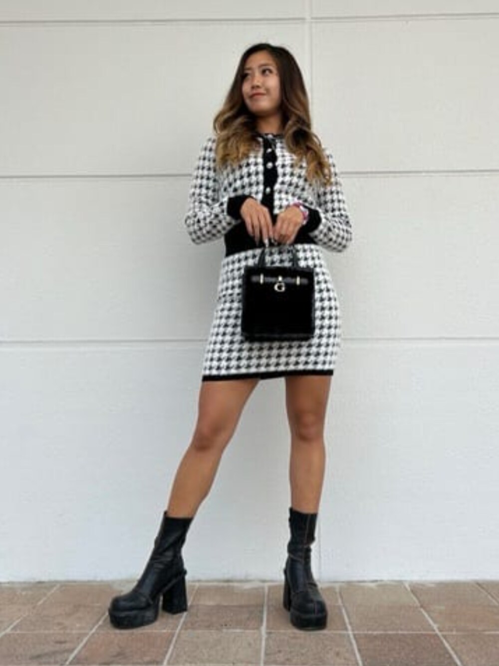 心も体ももふもふあったかcoordinate♡ 白黒モノトーンコーデが結局優勝🥇 千鳥格子のセットアップは肌触りが百点満点でウエスト部分がセット双方ぴっっったりするのでスタイルアップ 動きやすい上にスカートの丈もちょうど良くって文句なしっ milky Blueの2色展開になっております bagもふわっふわでずっと触っていたい、、、 今年の秋冬はぬいぐるみみたいな可愛いladyをめざします。もふっ