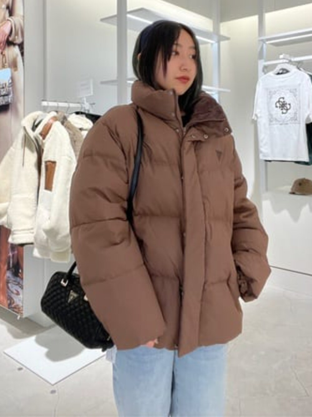 ブラウンのダウンジャケット 淡いデニムや、ホワイトにあうアイテム 今までにないカラーです ブラックや、ホワイト持っている方におすすめ! バックは、2wayタイプでマチもしっかりしており、長財布が入るおおきさです!