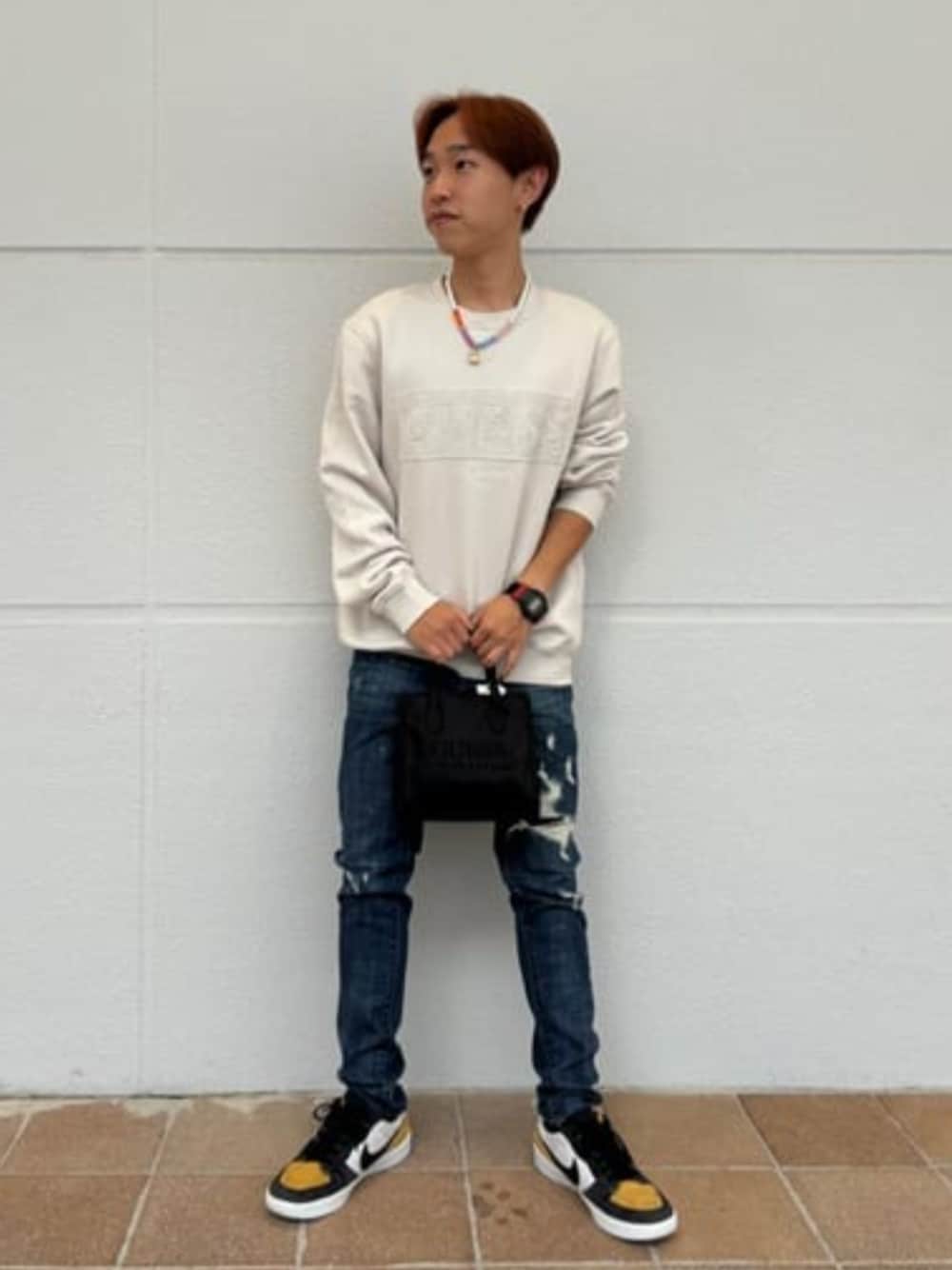 GUESS JAPAN(GUESS JAPAN)のスウェット「Eco Beau Crewneck Fleece Sweatshirt トップス スウェット」を使ったコーディネート