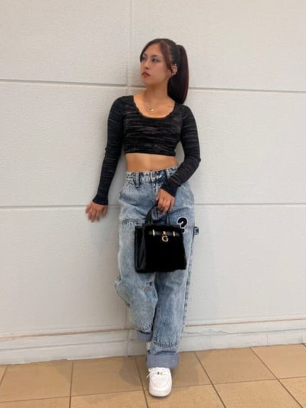 こちらはラフなコーデでデニムはメンズですが、トップスはレディースのショート丈でセクシーさも出していきます