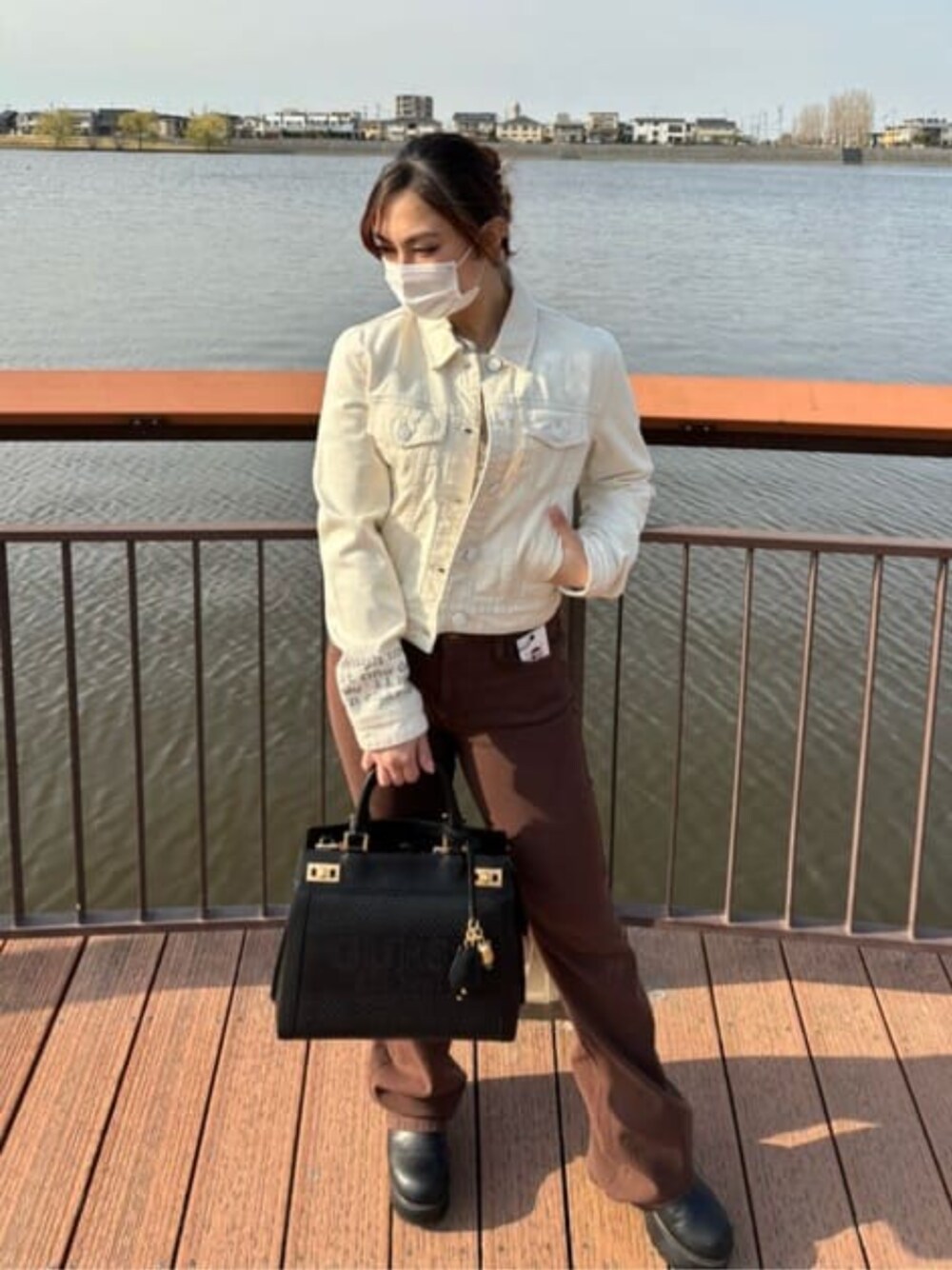 GUESS JAPAN(GUESS JAPAN)のハンドバッグ「KATEY Perforated Satchel」を使ったコーディネート