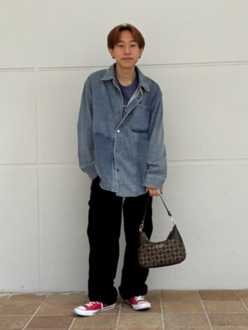 ストリートcode🔥 今回は私服でも使っているitemメインでコーデを組んでみました! ジャケットはパッチワーク加工されとおり、色んなカラーのデニムと相性バッチリです! また、TOPSは日本人サイズで合わせやすく、色味がグラデショーンがある紫でほかのアイテムおなじみやすいですっ! カーゴpantsは黒一色だけのシンプルなカラーリングでポケットが4つで強く見えますがカラーの統一感で相殺しているので、カジュアルからフォーマルまでなんでもいけるのが強みのアイテムになっています! bagは秋カラーでGロゴが差し色になって可愛いデザインです🔥🔥