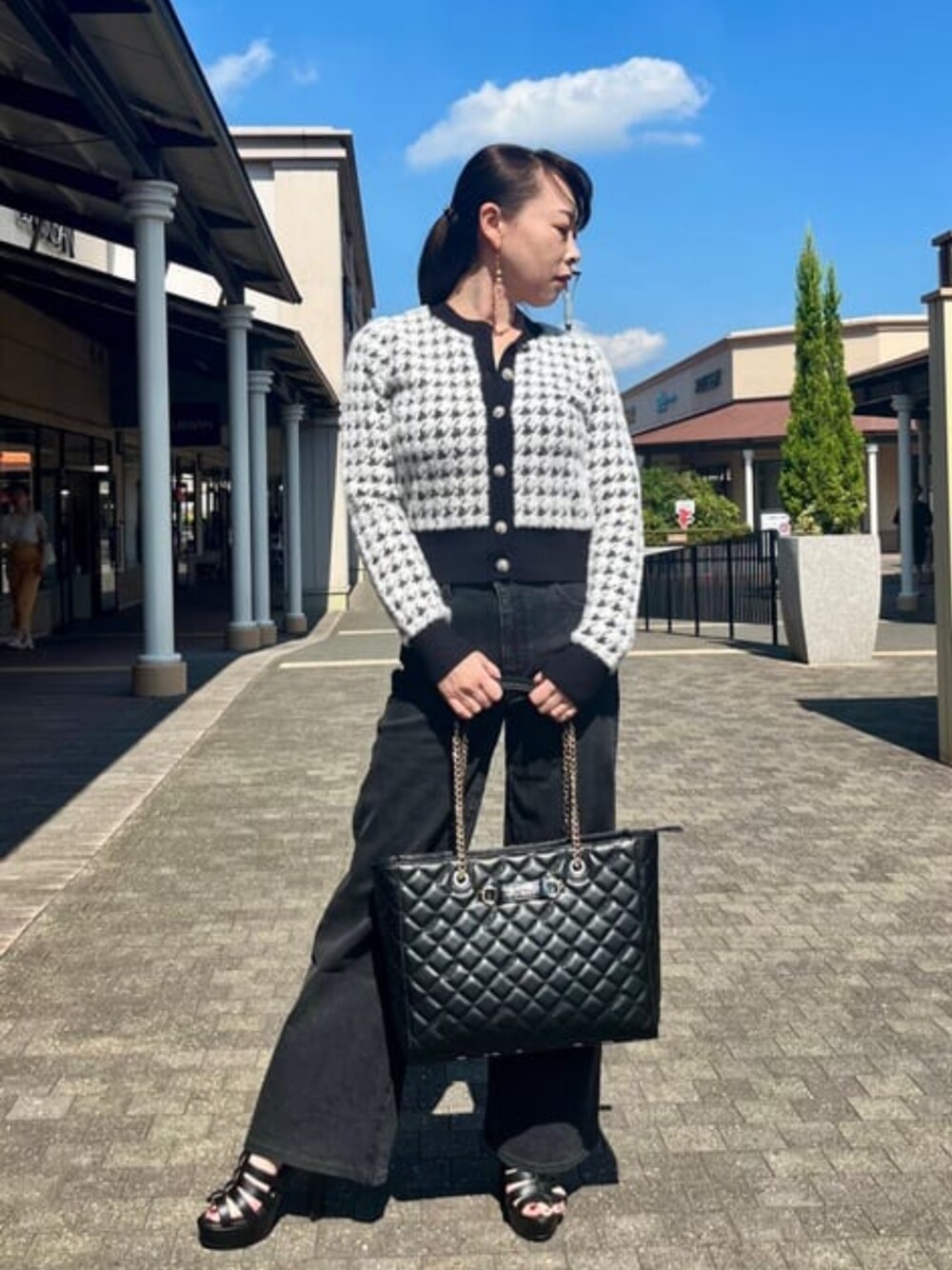 セットアップのトップスをカーデ使用で! オフィスカジュアルをイメージしてみました! バックはA4サイズも入り、内容量たっぷり♪ポケットも充実してるのでお仕事に最適です!