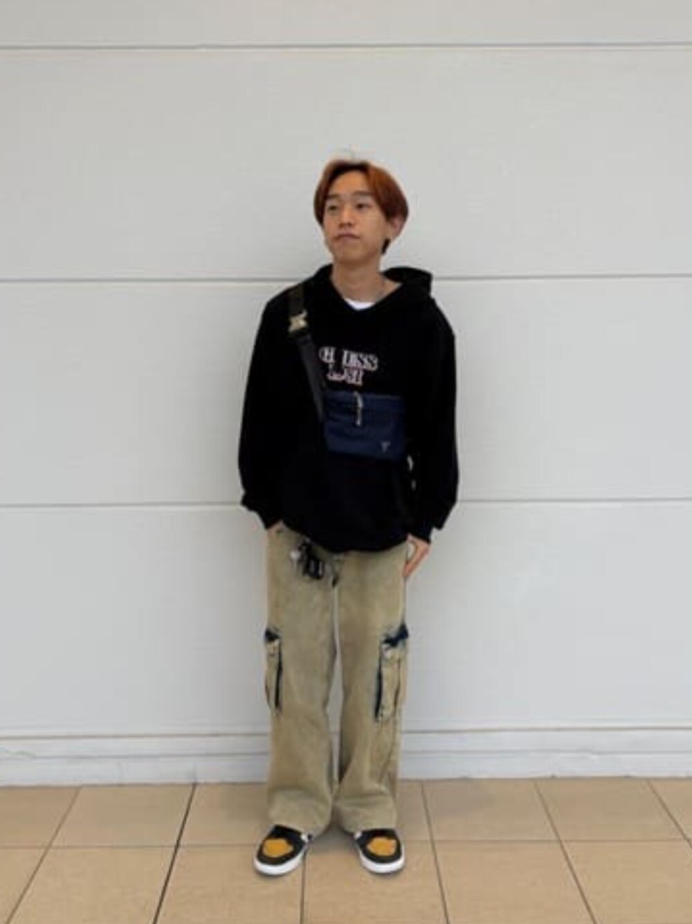 ストリートカジュアル😊 黒のトップスで Alineシルエットを強調させ綺麗なスタイリングに仕上げました😍 フーディーは着丈は長くないですが少し大きめなので着やすいのが特徴です!! カーゴデニムはヴィンテージカラーでおすすめアイテム✨️ これからの季節布の量が増えていくので調節しやすいウエストバッグが大活躍!!