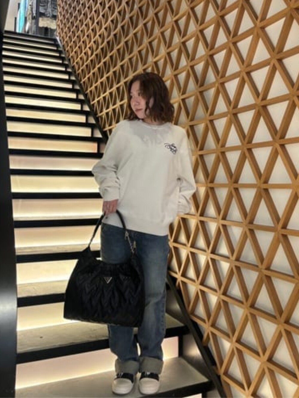 バックプリントが可愛いこのニットはブラックとホワイトの2色展開で両方色合いがほんまに可愛んです!! あえて大きめのデニムと合わせてメンズライクコーデもいいし、シンプルなコーデには小物でおしゃれにしていくのもありです