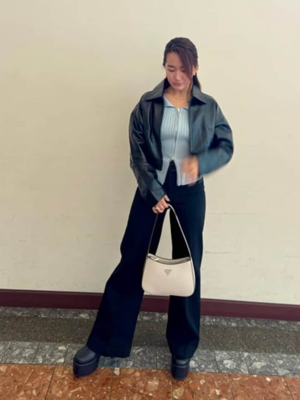 こちらのトップスはオフショルダーにも出来て大人コーデにおすすめ☺︎ デニムはストレッチが効いていてとても履きやすいんです! ハイウェストで脚長効果◎