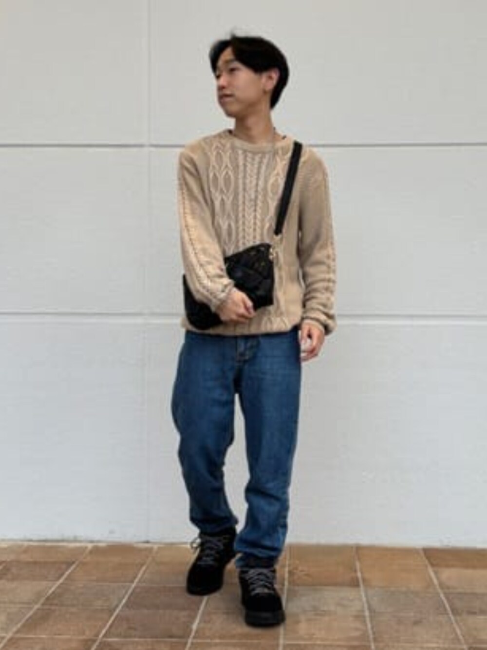 秋服シンプルコーデ♡ ニットはベージュのシンプルデザインなのですが、 ラインが特徴的でインナーにも単体でも大活躍のitemですっ!! バッグは高級感満載のデザインにワンポイントロゴなので大人っぽくも見せてくれるアイテムになっています! また、zip使用なのでお使いがとても楽です!