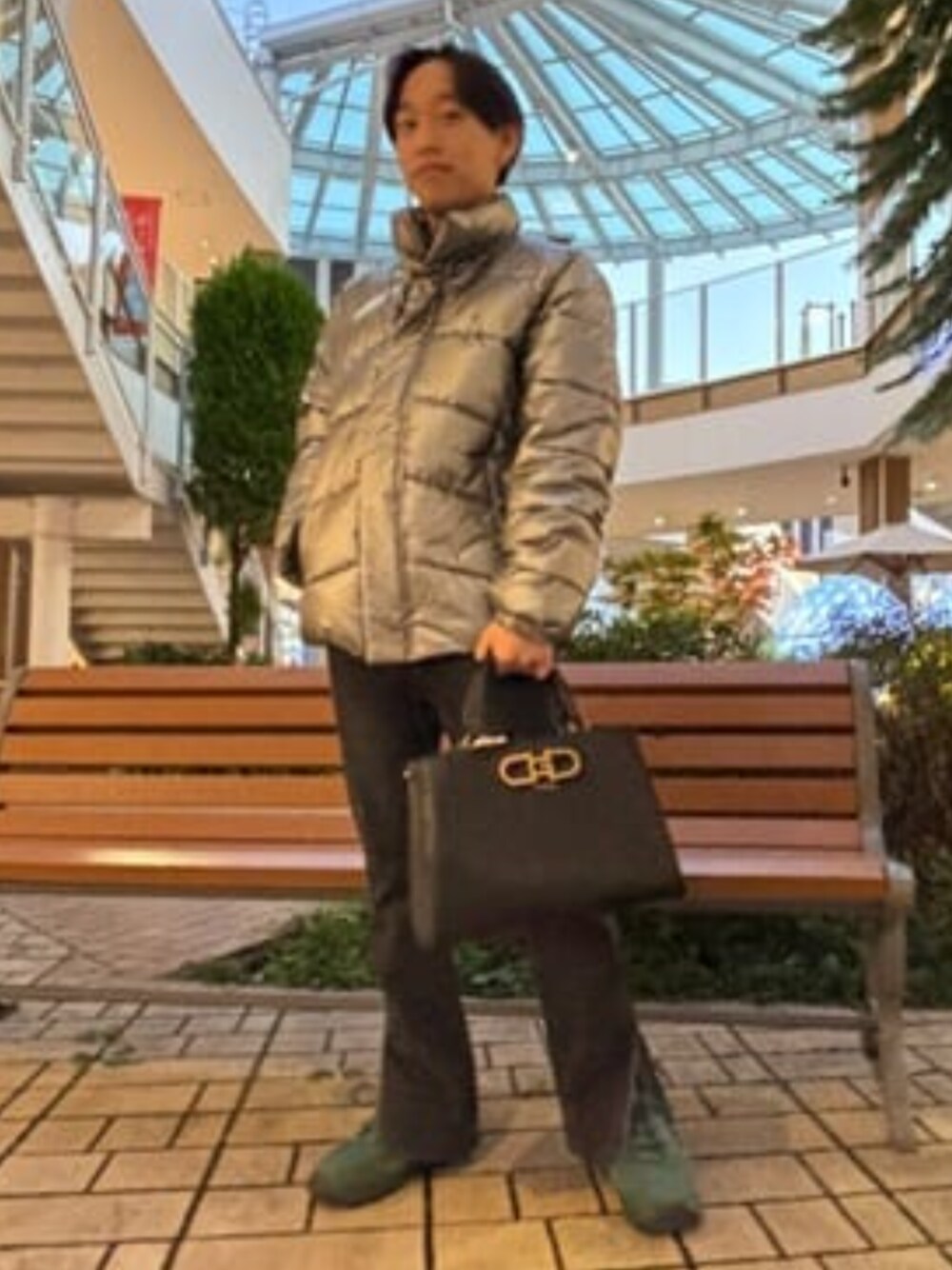カジュアルコーデ Outer 今年もトレンドのシルバーcolorで存在感もバッチリです! また、えりが高くボタンも着いているので保温力がとても高いっ!! denim レディースのデニムですが、メンズが履いても違和感なし! また、ブーツカットになっていて足を細くみせてくれる万能アイテム! bag サイズ感は大きめで収納がとても便利な仕切りが沢山着いています!! また、ショルダー付2Way使用なので場面に合わせて使い方を変えれるのが便利なポイントです!