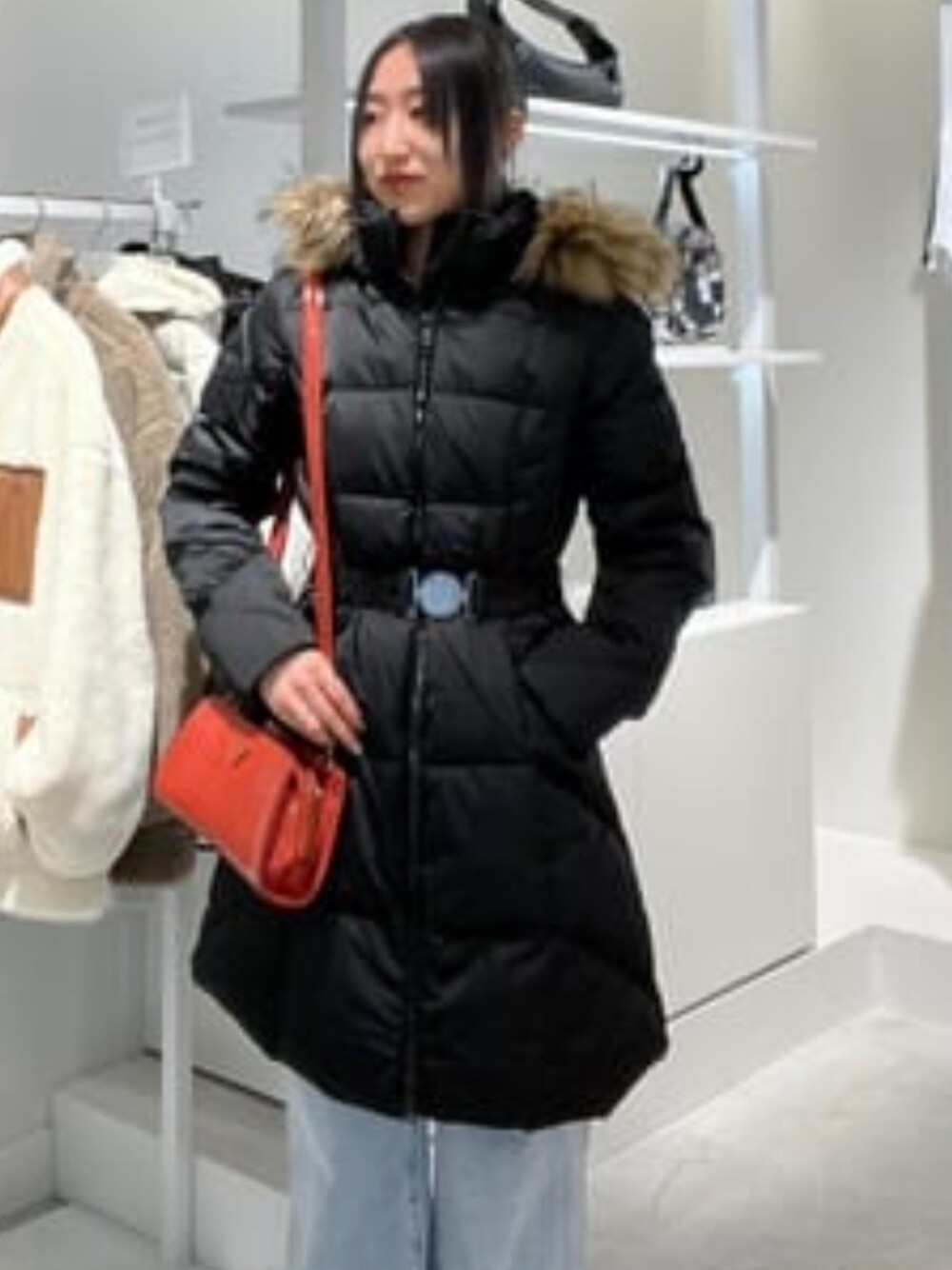 ダウンはベルトも付いているため、 くびれができてシルエットがとても綺麗です。 ダブルジップのため、足元も開ければ動きやすいです。 バックは、ブラットオレンジぽいカラー シンプルなこーでの差し色で◎