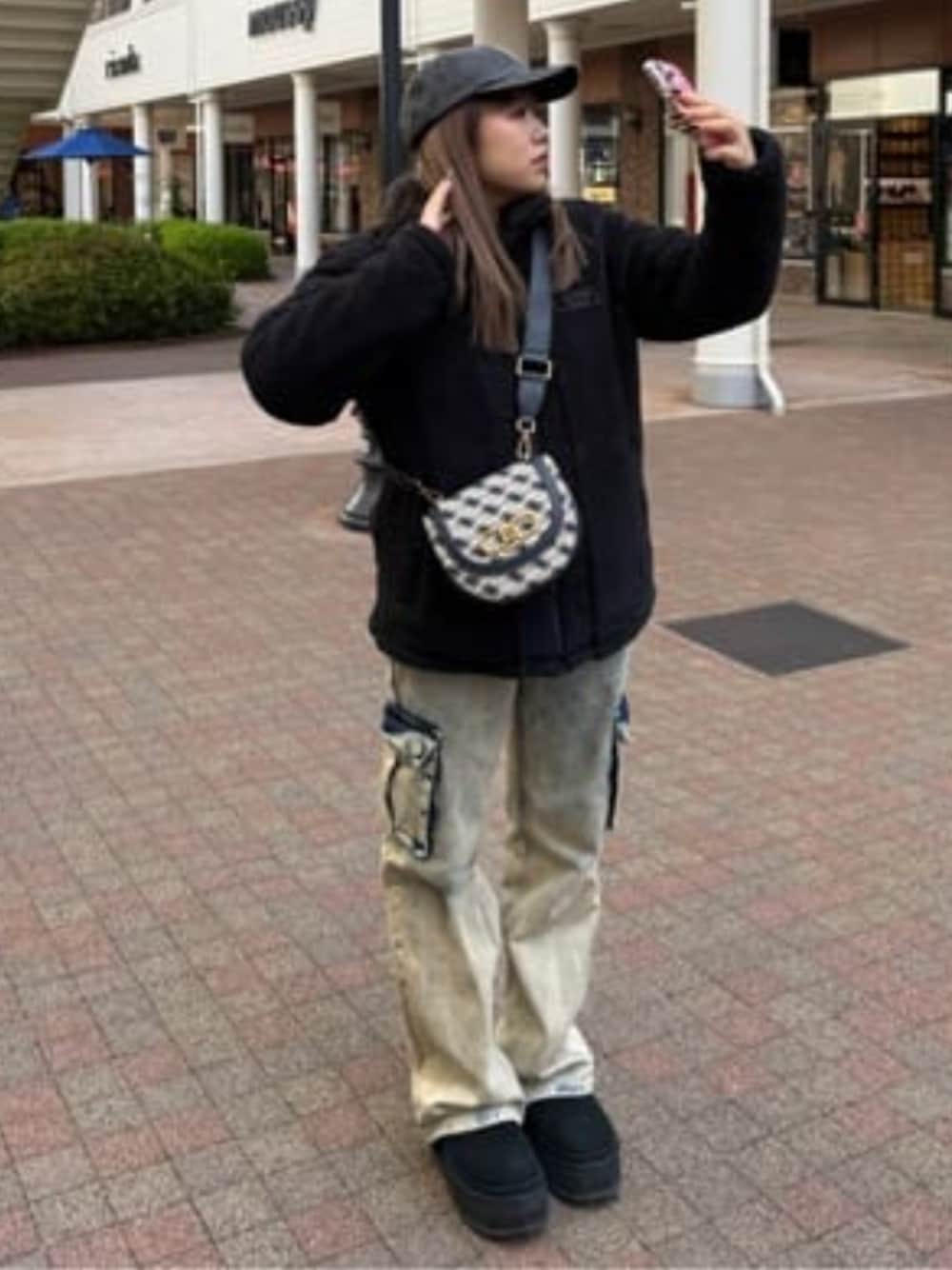 モコモコのボアが可愛くてあったかいアウターです♫ 明るめのbagと合わせるのがオススメです〜 帽子もシンプルな三角ロゴ▽になんでどんなファッションに合わせやすい色になってますよ〜☺︎☺︎