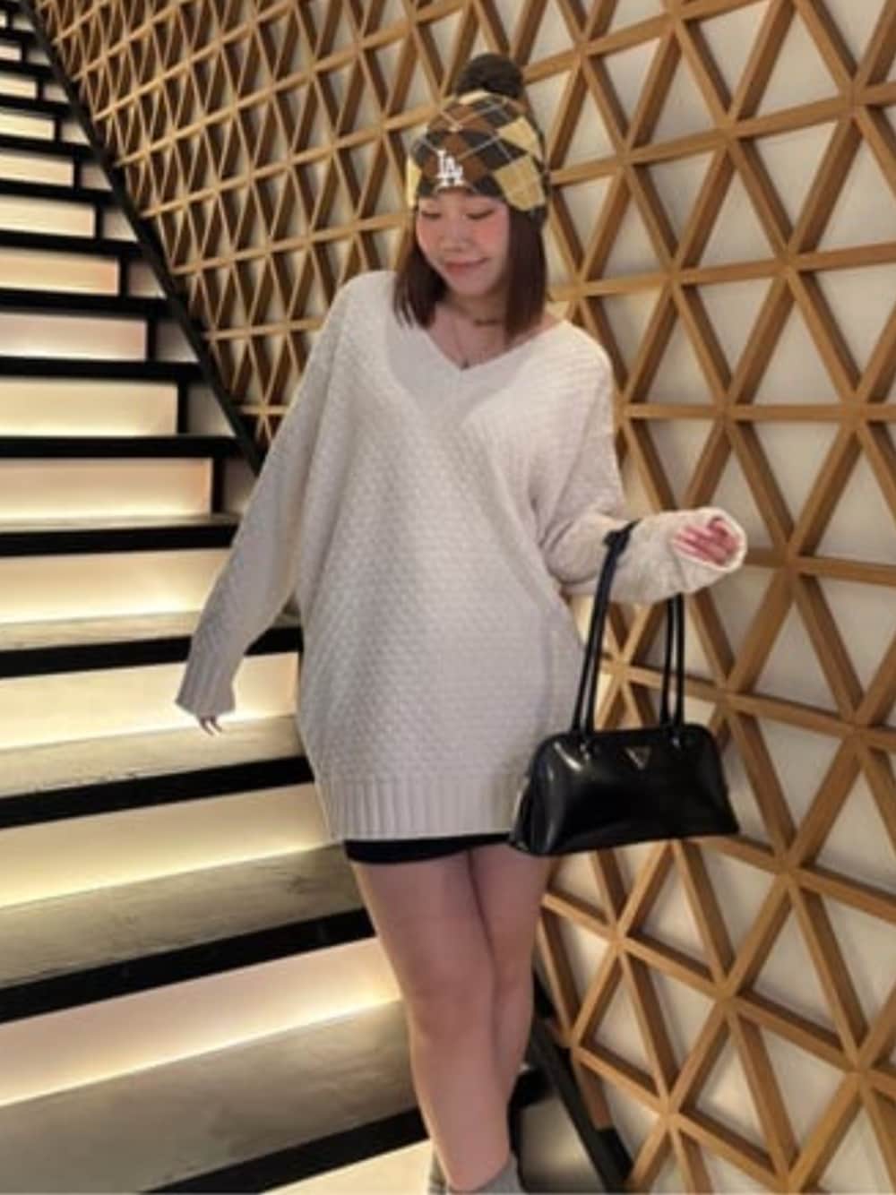 ルーズシルエットが可愛いニットは生地がとにかくもちもちで気持ちよくて、ルーズシルエットなのにVネックだからスッキリして見えます‼︎ 赤と黒と白の3色展開でどの色も可愛いです🩷 デニムスカートはストレッチが効いててはーきやすい!
