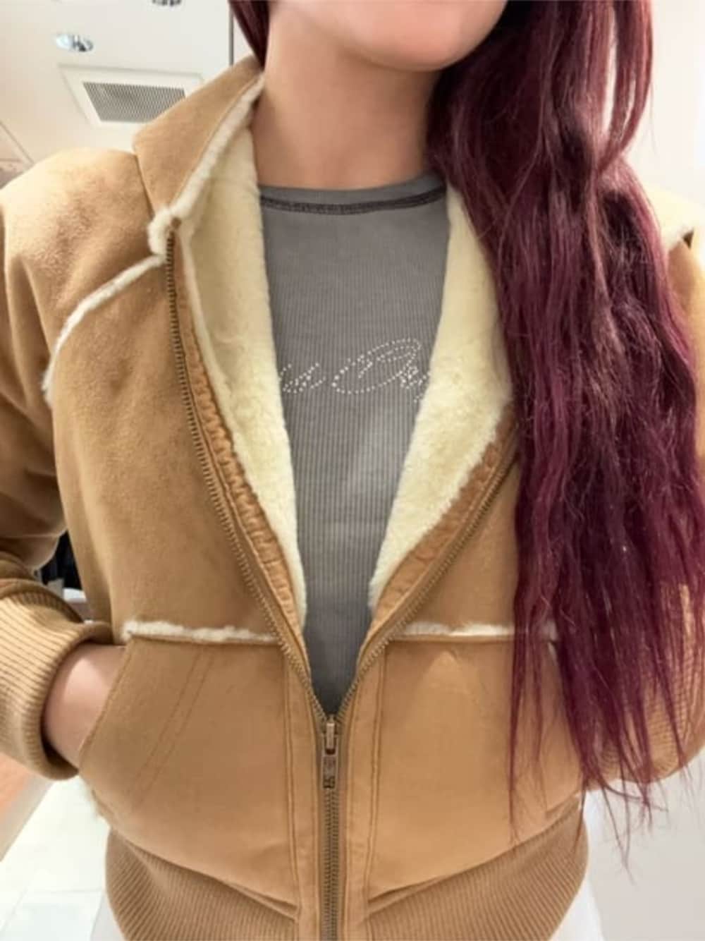 【試着サイズ】 tops XS jacket XS ショート丈 中もモコモコ!薄地でも十分です