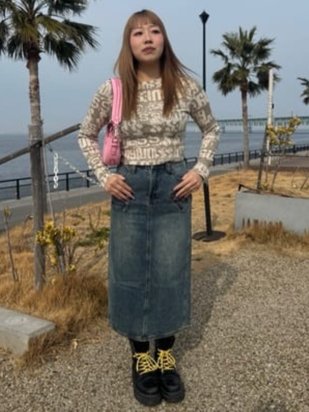 originalsのトップスとデニムスカートです! トップスはパンツでも相性バツグンです◎ デニムスカートは後ろのスリットで足をチラ見せできるのが超カワイイ!横から見ても細見えしちゃいます♪