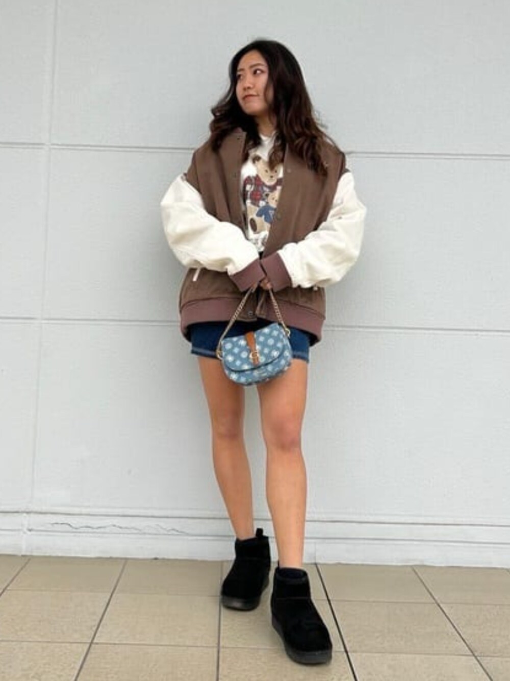 あるー日森の中ーくまさんにーであった〜〜 はなさくもーりーのーみーち〜〜 くまさんにーでーあーった〜〜 って、クマさんに出会ったら歌ってはいられないので、爆速力で走って逃げ切るcoordinateʕ•ᴥ•ʔ スタジャンとトレーナーはオーバーサイズで合わせたい気分♡ 裏起毛であったかですー
