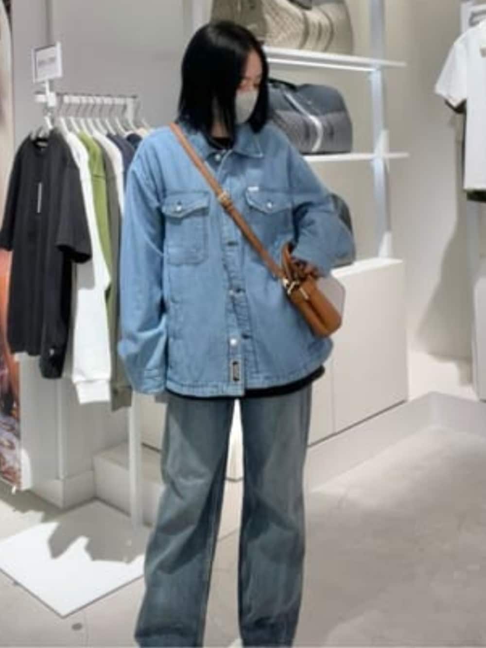 デニムに、キャメルカラーは相性抜群です。 オーバーサイズの薄手デニムジャケットです