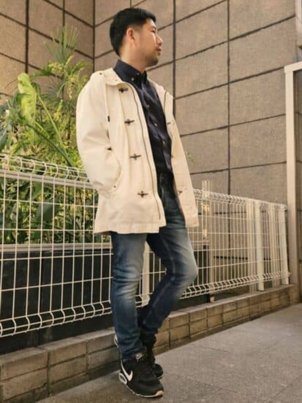 【GUESS MARINE】シリーズより オフホワイトが印象的なコートをチョイス♪ ディティールにこだわりがあり マリンテイストな1着です!! スキニーデニム×シャツインスタイル で合わせるのがオススメ!!