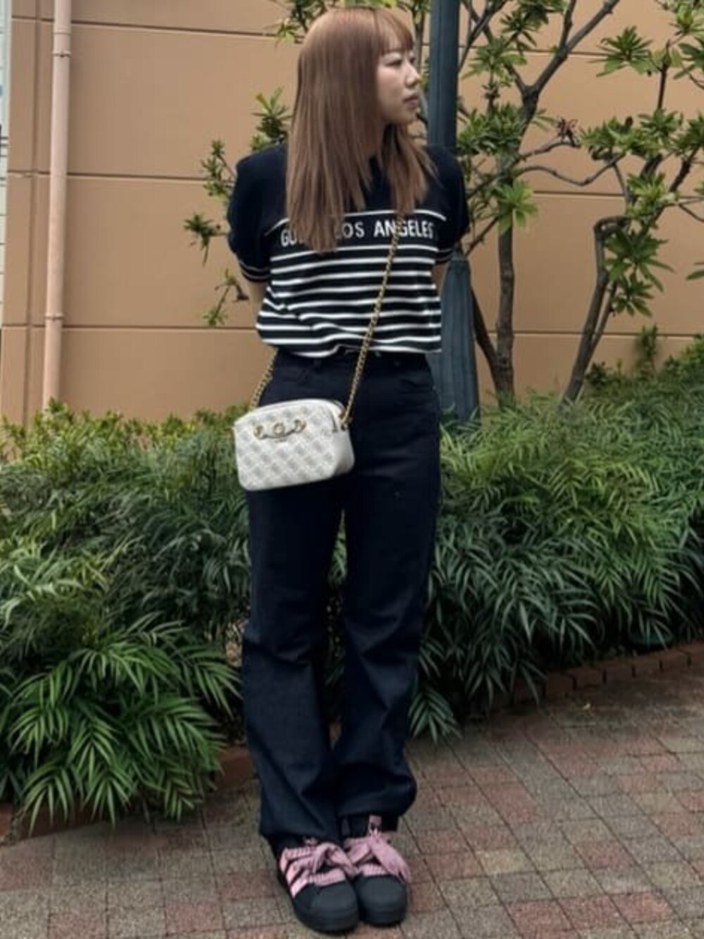 GUESS JAPAN(GUESS JAPAN)のデニムパンツ「Obi-logo Print One Washyide Denim Pants デニムパンツ ジーンズ レディース」を使ったコーディネート