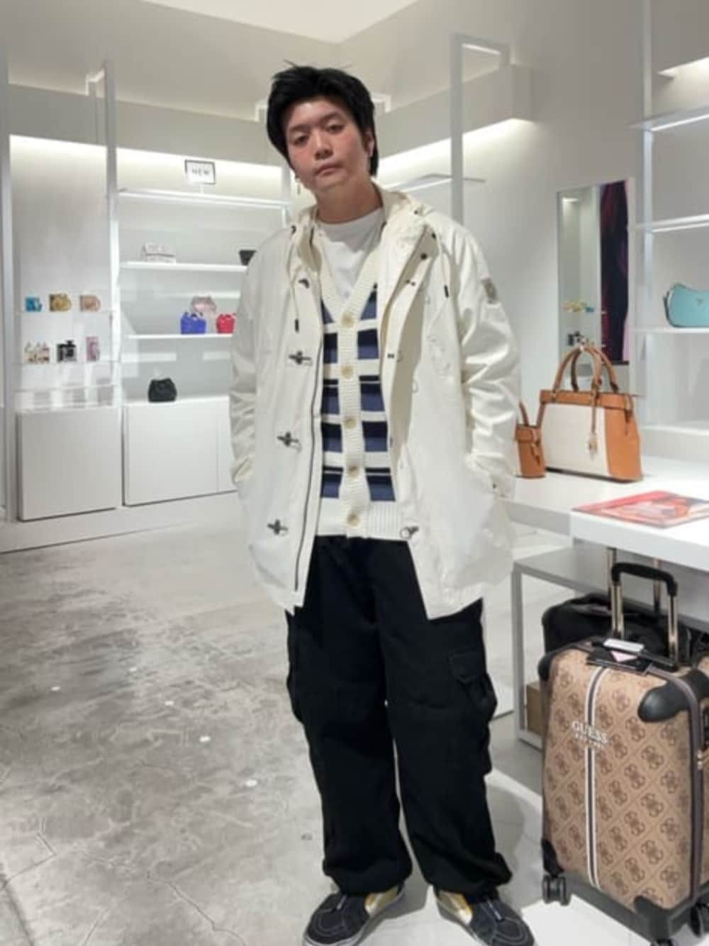 新作アウターです! ファスナーとフック式のボタンで 2段階で前を閉める事ができます!