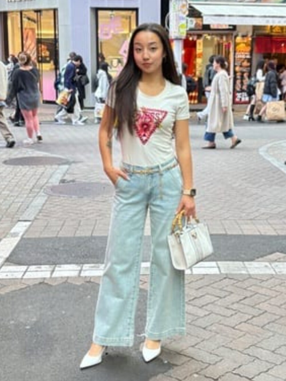 友達や1人でのおでかけにピッタリのフェミニンコーデ! トップス:XS〜M スリムタイプで肌触りがいい! バッグ 黒もあります!