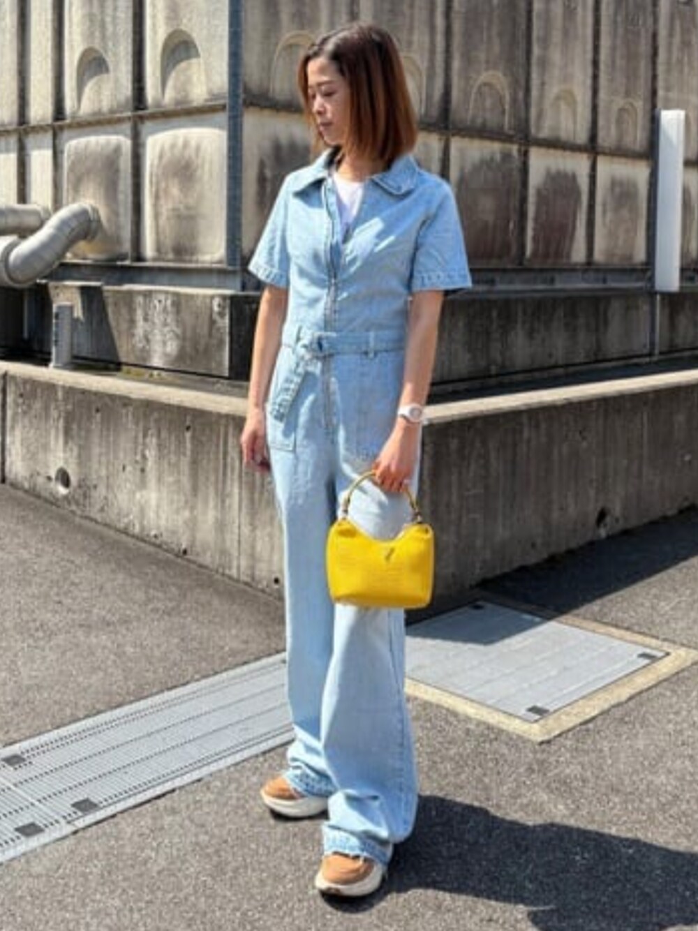 デニム×ビタミンカラーの組み合わせ好きなんですよね〜(^O^)! デニムのジャンプスーツはフレアパンツシルエットなので気負いなくスタイリングできるのも魅力的です♫