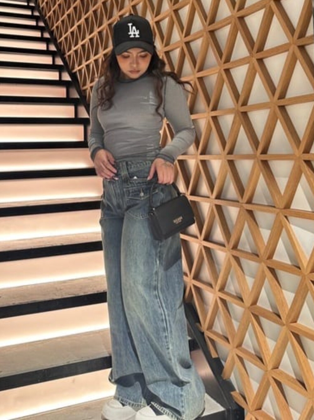 GUESS JAPAN(GUESS JAPAN)のデニムパンツ「GUESS Originals Double Patch Pocket Wide Leg デニムジーンズ ワイド レディース」を使ったコーディネート