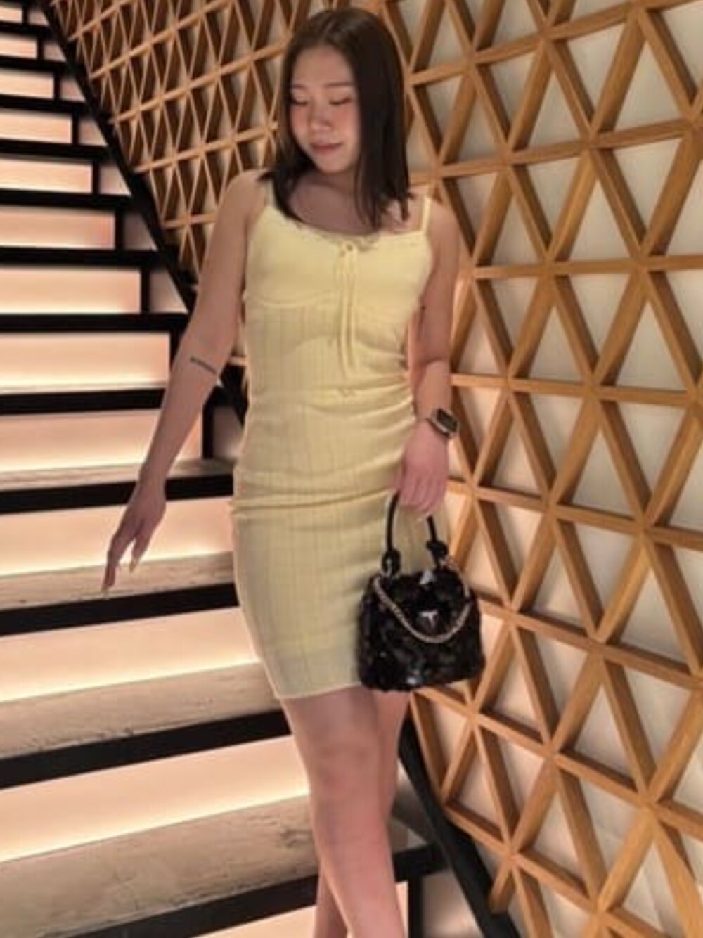 SSっぽい色が可愛いこのワンピースはカラー展開他にもございますのでそちらもチェックしてみてください‼︎ ギラッギラのバッグも他の色もあってとにかくこのギラギラさがかわいい‼︎ 小さめサイズだから派手すぎず持ちやすいです‼︎