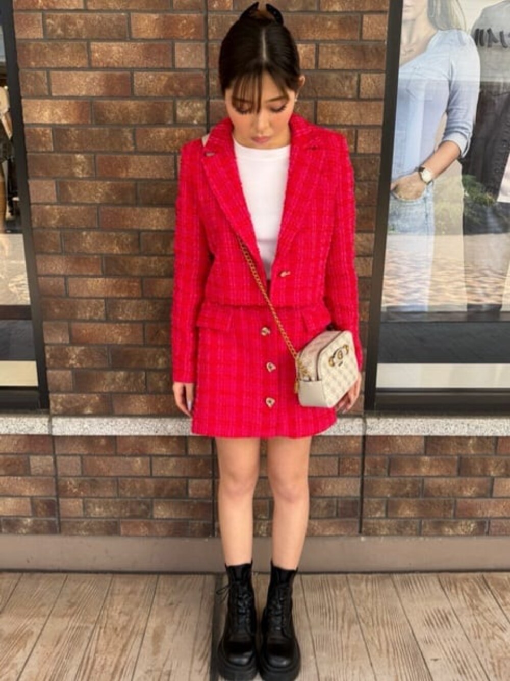ピンクカラーのセットアップ♡♡マルシアーノ(^^) この春ぴったりのコーデ完成 ^.^ スカートのボタンのデザインもかわいい♡ シルエットも綺麗に見えるのでスタイルup ♡