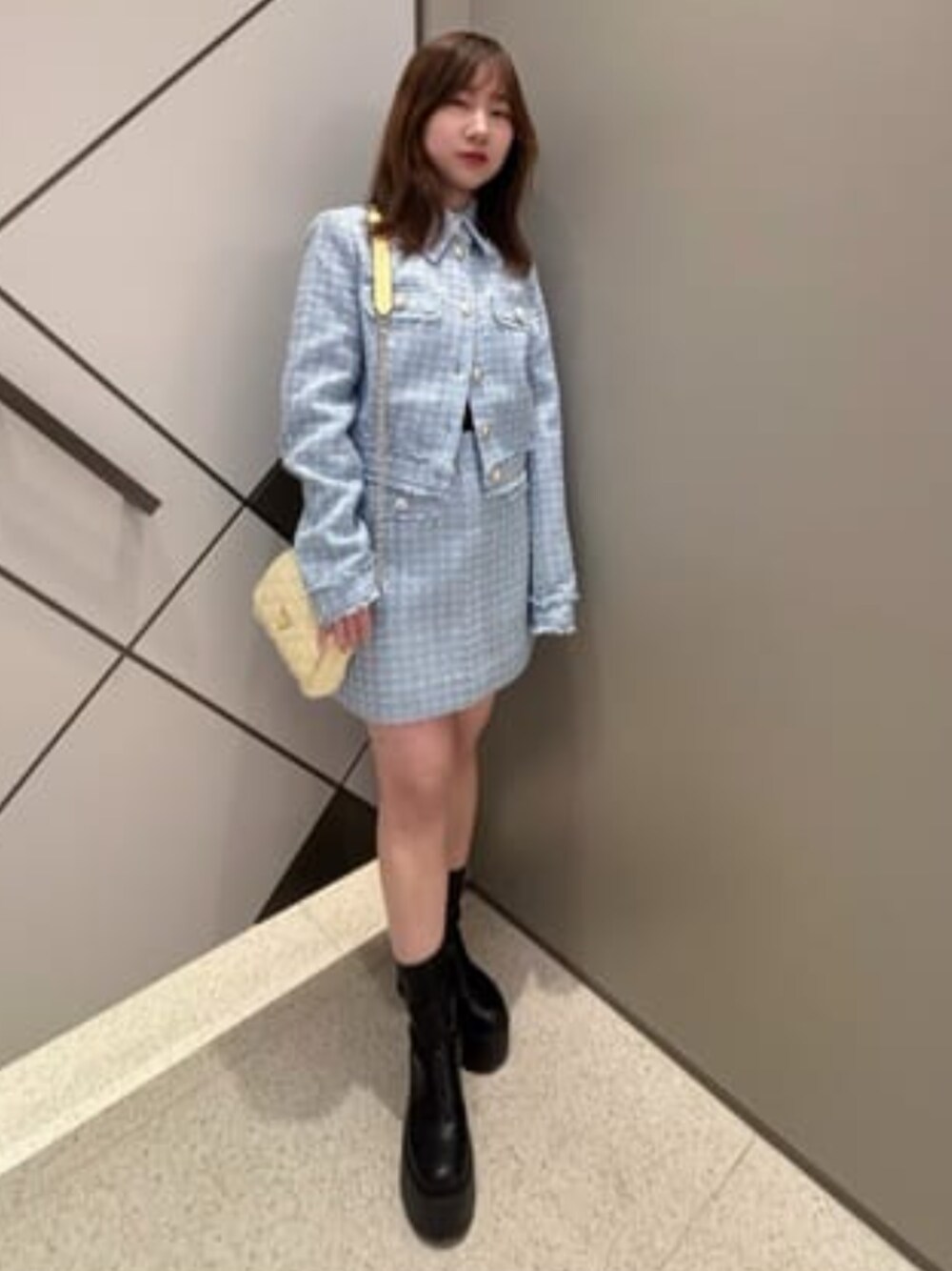可愛くて高級感があり、デートにもおすすめのコーディネートです! ジャケットとデニムを合わせると一気にトレンドがアップカジュアルなアイテムとも相性が良いです🎵 スカートは低身長の方でも着れる長さです(╹◡╹)
