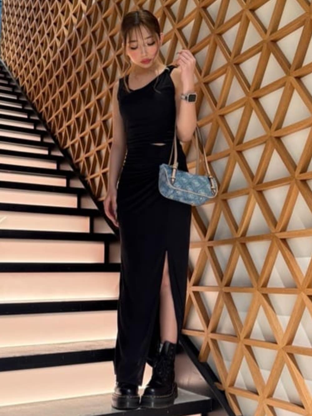 ワントーン黒色のセットアップコーデ! スカートはスリットが入っていてすごく動きやすい生地感になっています!ラフに着ていただけます! ♡