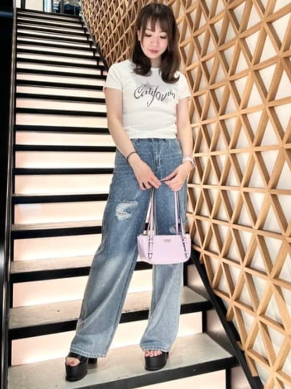 【Tops】 Sサイズ着用 程よいピタッと感のTシャツ~☆ なんでも合わせやすくて着回し◎ 【Denim】 24インチ着用 キラキラデニム~!!! 薄手な生地感で夏でも履きやすい♪ 形も綺麗で脚長効果抜群♡ 【Bag】 コロンっとしたシルエットが可愛いbag♡ カラーも豊富なのでお好みカラーで☆ ***ECサイトで完売商品でも、店頭でご用意がある場合もございます♥お店に電話、またはインスタのDMよりお問い合わせ下さいませ♡ ***