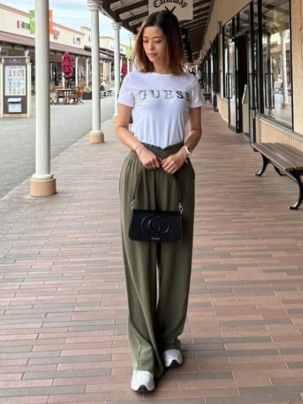GUESS JAPAN(GUESS JAPAN)のショルダーバッグ「ECO Mietta Flap Shoulder Bag ショルダーバッグ レディース」を使ったコーディネート