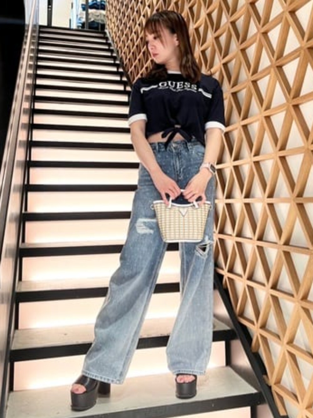 GUESS JAPAN(GUESS JAPAN)のショルダーバッグ「ATALIA Mini Tote トートバッグ」を使ったコーディネート